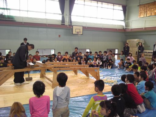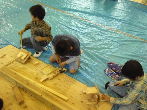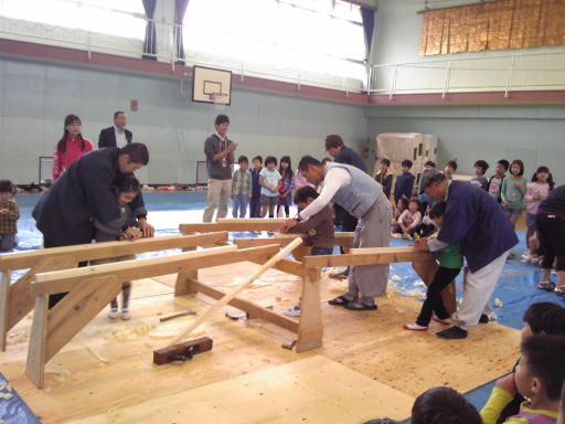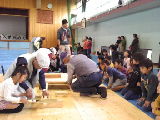 地元小学校で木工教室 投稿日: 2013年11月8日 11月6日(水)、秋の恒例行事となりました茅ヶ崎市内小学校での木工教室を行いました。 2年生4クラスが体育館へ集合して、かんな削り、釘打ち、のこぎりの体験。 大工さんの技の数々にはまっすぐな視線が集まり、有意義な時間となったようです。 ご家庭でも、お父さんお母さんと楽しくやってみてください。 こどもの集中力と工作の発想にびっくりされると思います。 木っ端は弊社へご来社いただければお分けできますよ。 (高橋眞理)