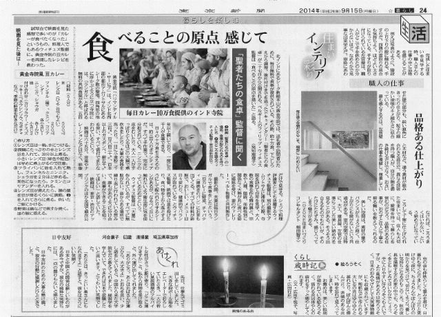 2014年9月15日(祝) 東京新聞に取材記事が掲載されました。