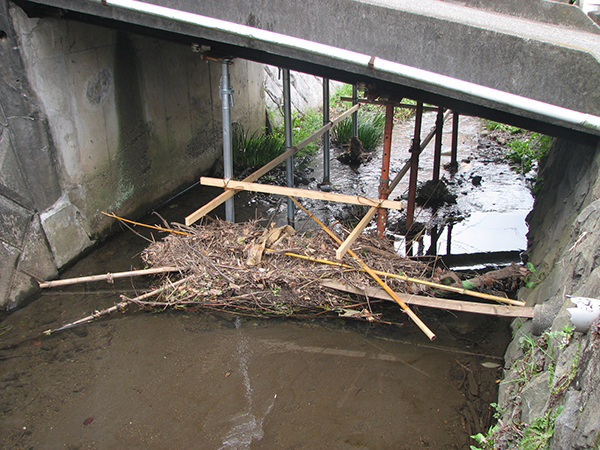 ところが、予想外に水路を流れるゴミ?流木?があり、2週間後には川に入って撤去・清掃が必要な始末となりました。