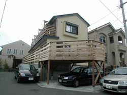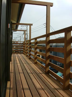 東南の角地で、2階南側のルーフデッキと1階東側駐車場上部の大きなウッドデッキがアクセントになった外観と、一日中光が差し込むリビング。とても明るいお宅ができあがりました。