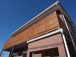OMソーラーの住まいです。廊下や階段の幅を広くとり、ゆったりとしたプランにしています。2階LDKで1階の寝室にOMの暖気を取り入れます。