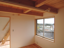 2階は寝室を3つとロフトを確保しています。床は赤松、壁は珪藻土、天井は和紙です。