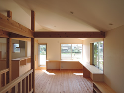 また1、2階共に階段廻りを回遊できるプランとして家内を広く感じるようにしています。