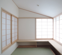 北側道路より敷地が1m程上がっていることから、この高低差を利用して、玄関上が中二階の和室となるようにスキップフロアとしています。