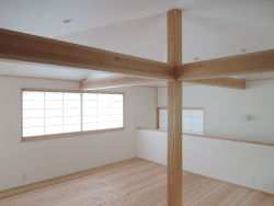 2階には大きなフリースペースを方形屋根の下にプランしています。