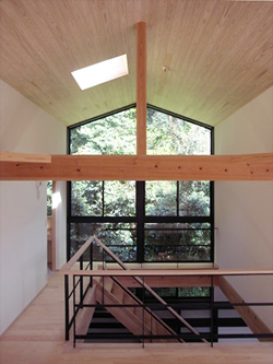 そこで、森を臨む窓を住まいの中心に考えることにより、全体のプランや窓の配置を考えて展開していきました。土間玄関から内玄関・居間食堂や造作キッチン・階段・和室・2階のフリースペースや水廻りなどの全ての空間、建具の取手や間接照明などのディテールや高窓の配置など、全てにこだわった仕上がりになっています。