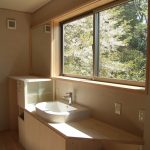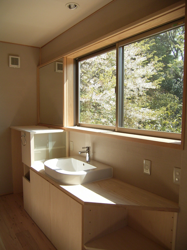 敷地は葉山の静かな住宅地にあるOMソーラーの住まいです。隣家の庭の借景を1階のリビングダイニングに積極的に取り込むことを考えました。