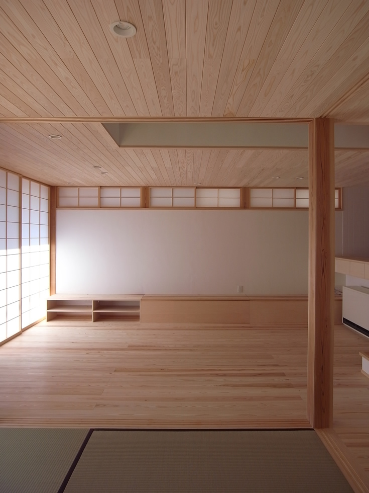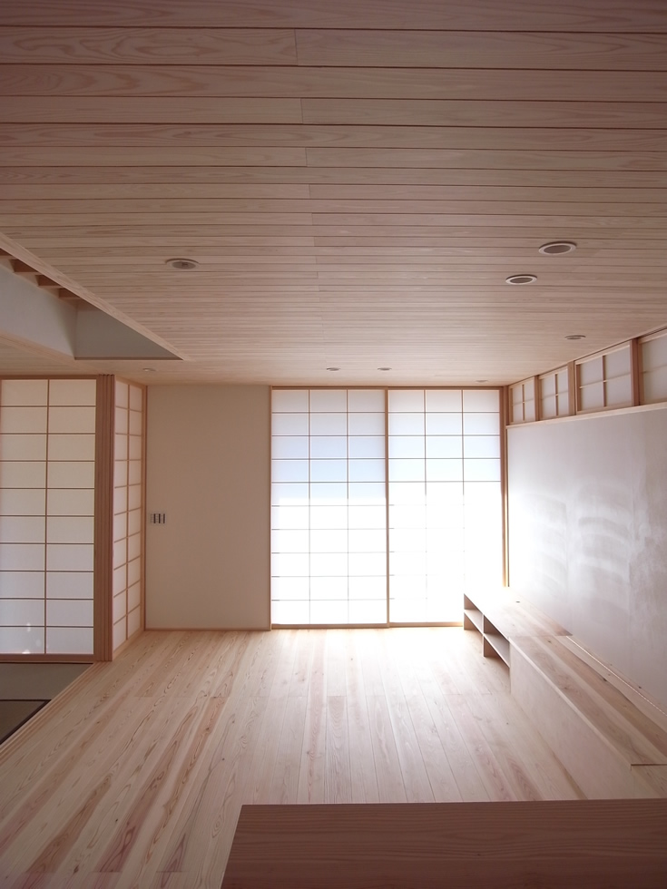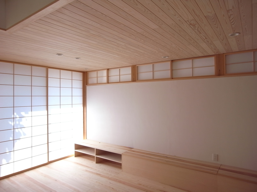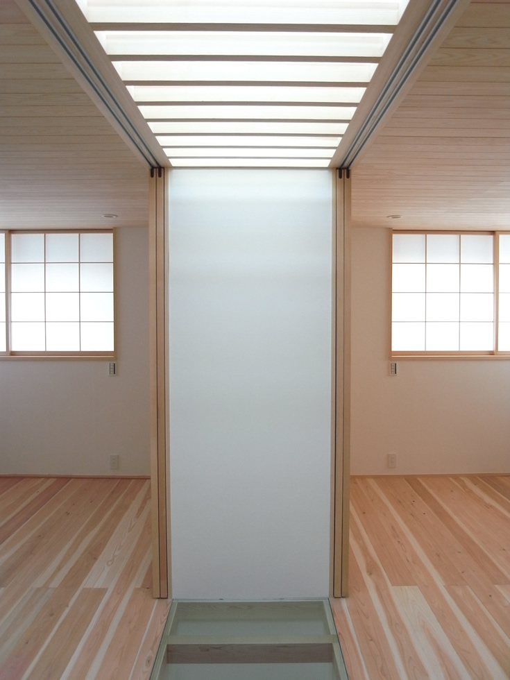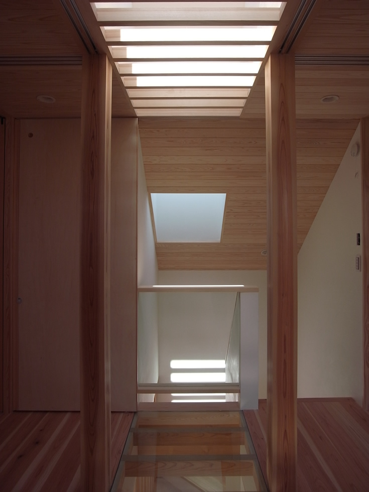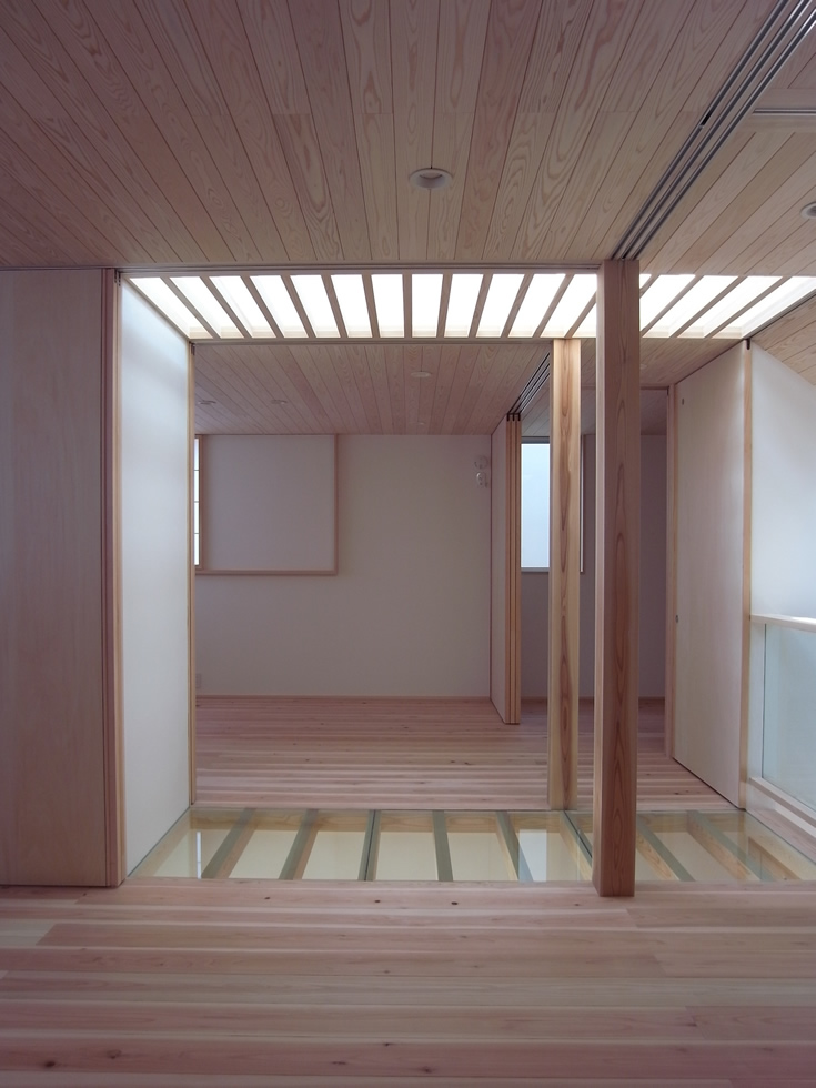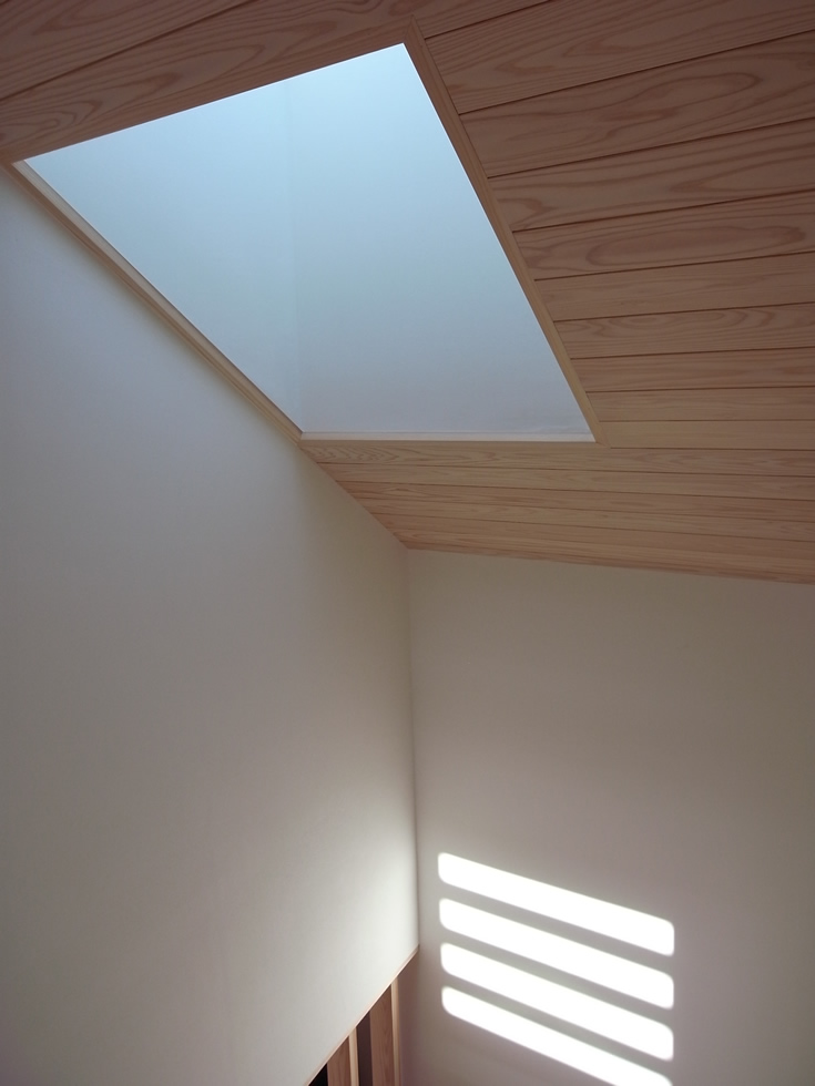 光を採りこめる方向を考えながら開口部の位置を決め、昼間はトップライトやハイサイドライトから採光できるように工夫しています。