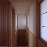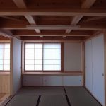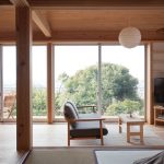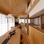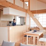 キッチンや1段上げた和室など、どこからでも眺望が楽しめるよう、メインの居間の障子を全開放としています。木製ドアの玄関や杉板張りの階段室など眺望とは反対側の空間も心地良くなるように工夫しています。