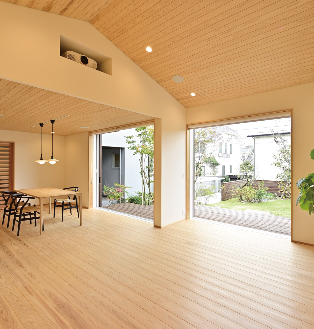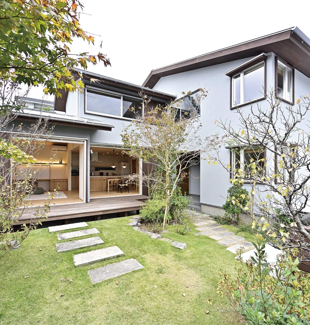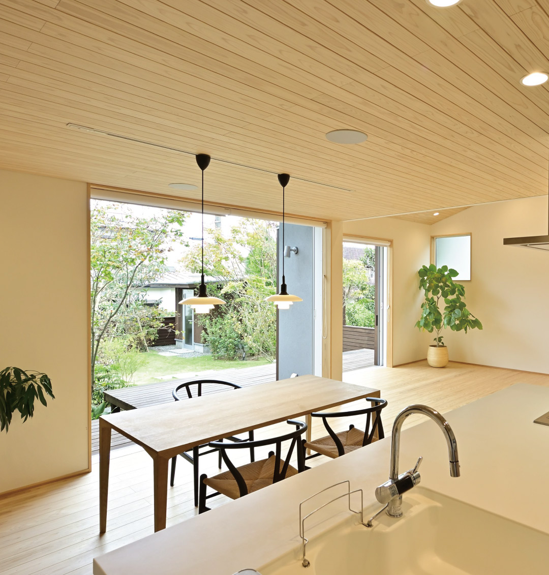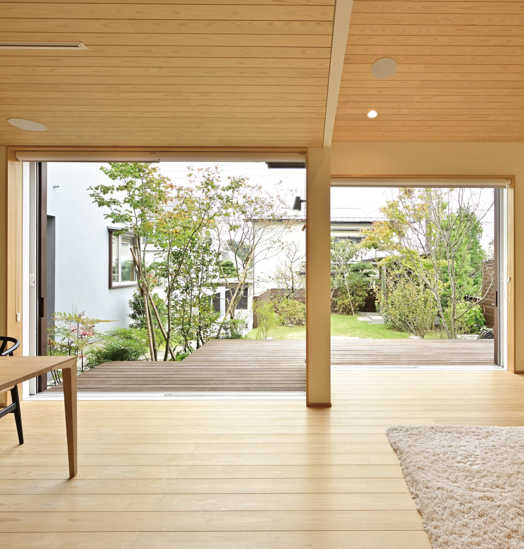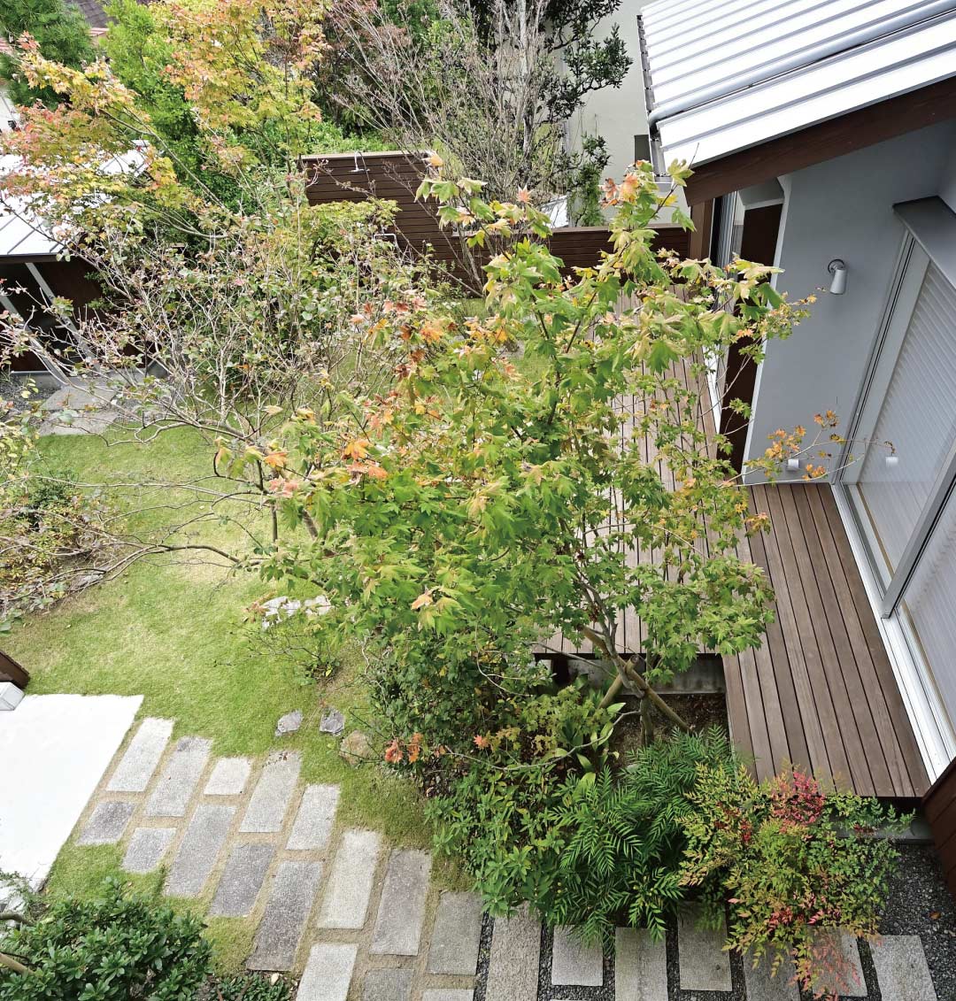 家族のくつろぎの間・仕事をする間は、離れていながら、庭を介してつながりのある、豊かな住まいとなっています。