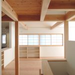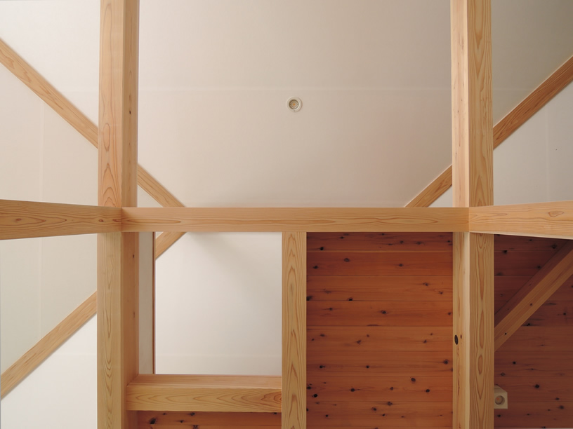 天井は和紙の重ね貼り。床材・柱・梁は杉です。