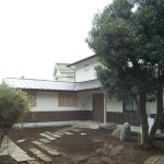 杉に包まれた大きなデッキのあるOMソーラーの住まいです。