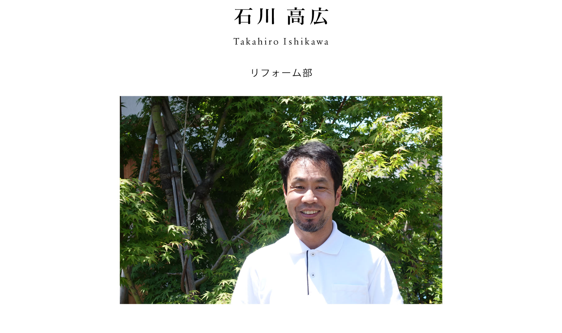 新築設計、新築施工管理など、改装工事など20数年にわたり住宅工事全般に係わってきました。現在はリノベーション工事など改装工事を中心として、営業、設計、現場管理業務にたずさわっています。 住む方にとってどのような住環境造りが最適なのかをしっかりと見定めて提案をさせて頂きます。住環境向上が住まい手さんの幸せにつながればそれが何より私の喜びとなります。お客様の幸せづくりが私の仕事です。 |