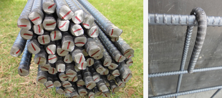 通常どこの家でも、鉄筋には凹凸な溝がある鉄筋を使います。これを異形鉄筋というのですが、この場合、住宅ではフックを付けなくても良いことになっています。付けることにより、鉄筋と外部に触れる厚みの基準が取れなくなるからです。