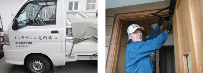 加賀妻では、家をずっと守って行く「家守り」という姿勢を持っています。工務店として必要不可欠な役割だと認識しています。 引き渡し後、半年・1年は工事を担当した監督、3年・5年・10年 ・15年・20年は専属のアフターメンテ担当社員が家守りシートにて点検を行います。不具合やメンテナンスやリフームのご相談も承っております。1年目、10年目は担当大工も同行します。